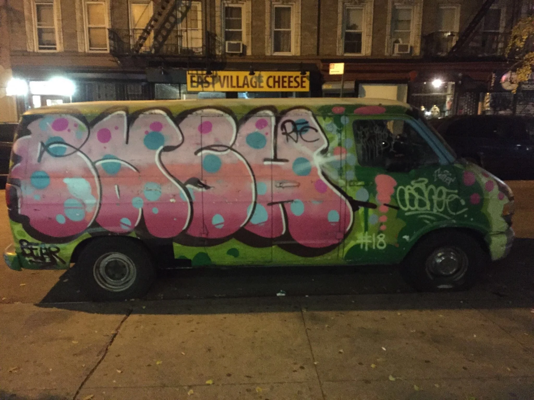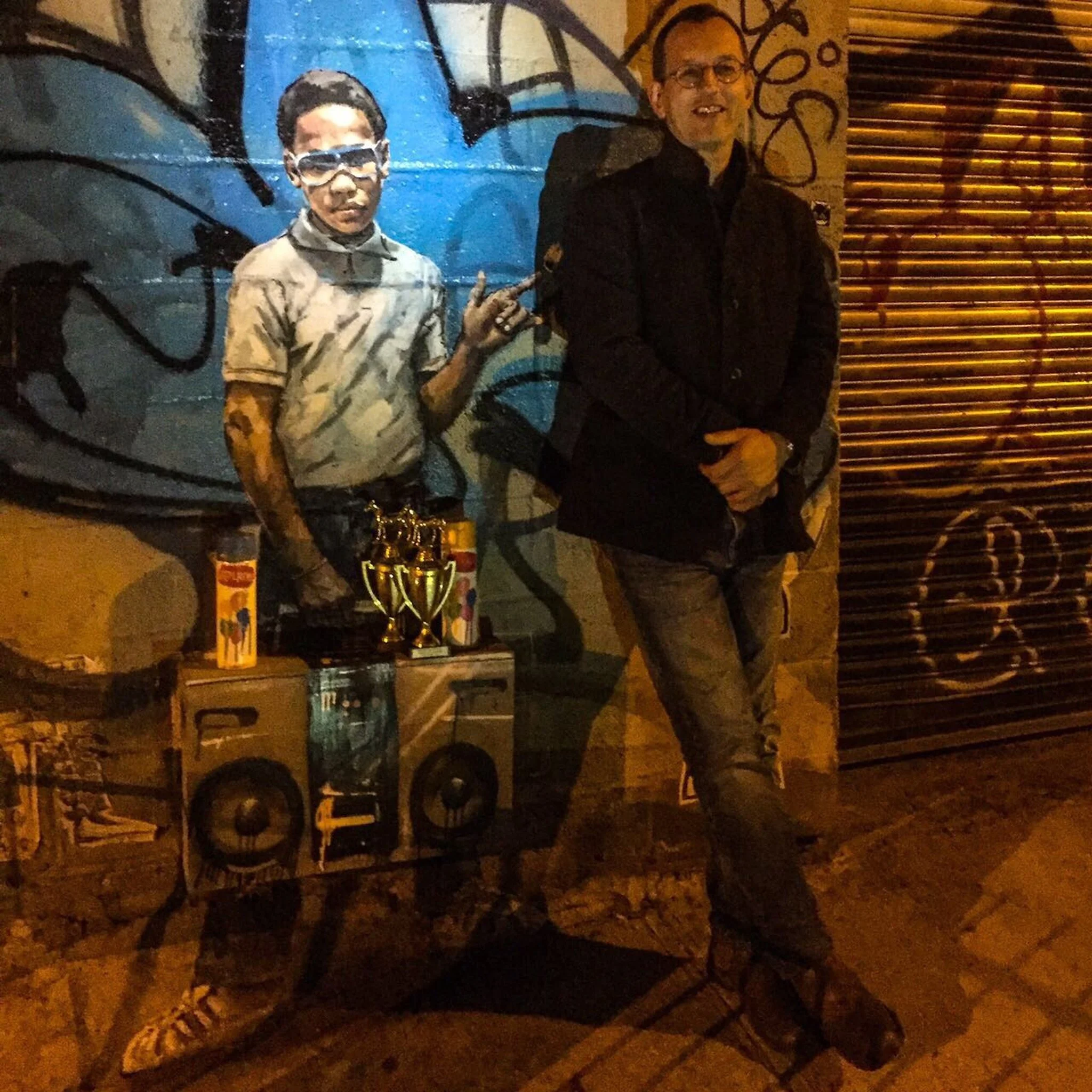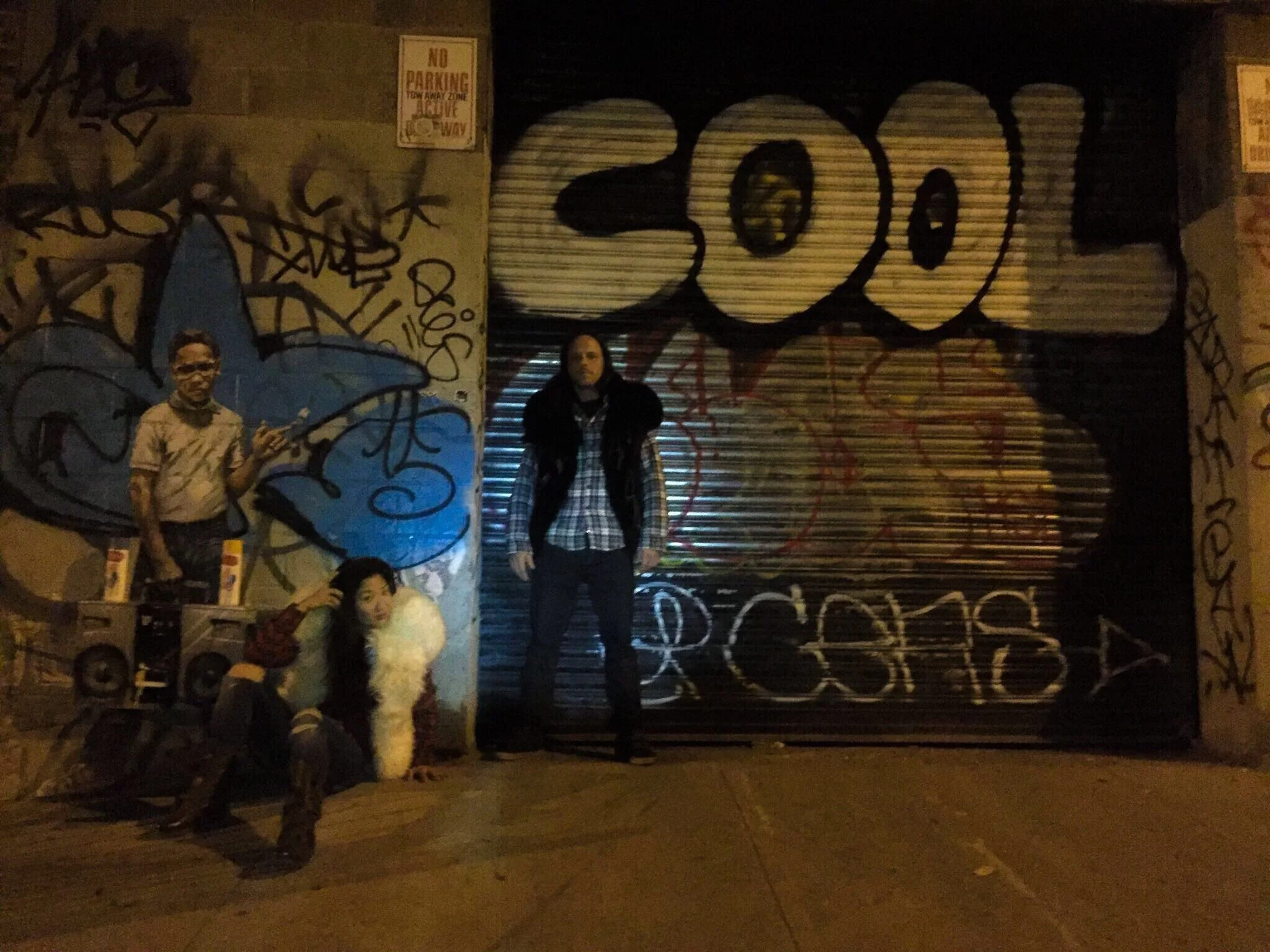 Outside the apartment we stop and talk about the new graffiti. I realise that the group of kids outside the doorway the night before were blocking the sidewalk so the graffiti could be painted without being seen. It had all been happening as I walked past.