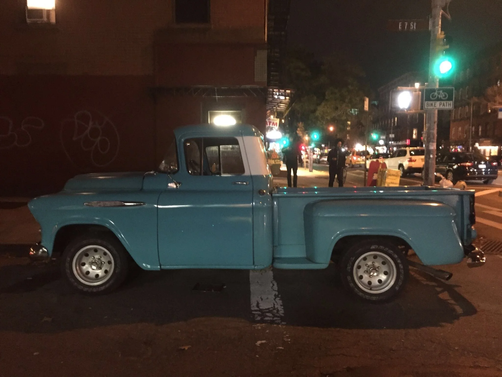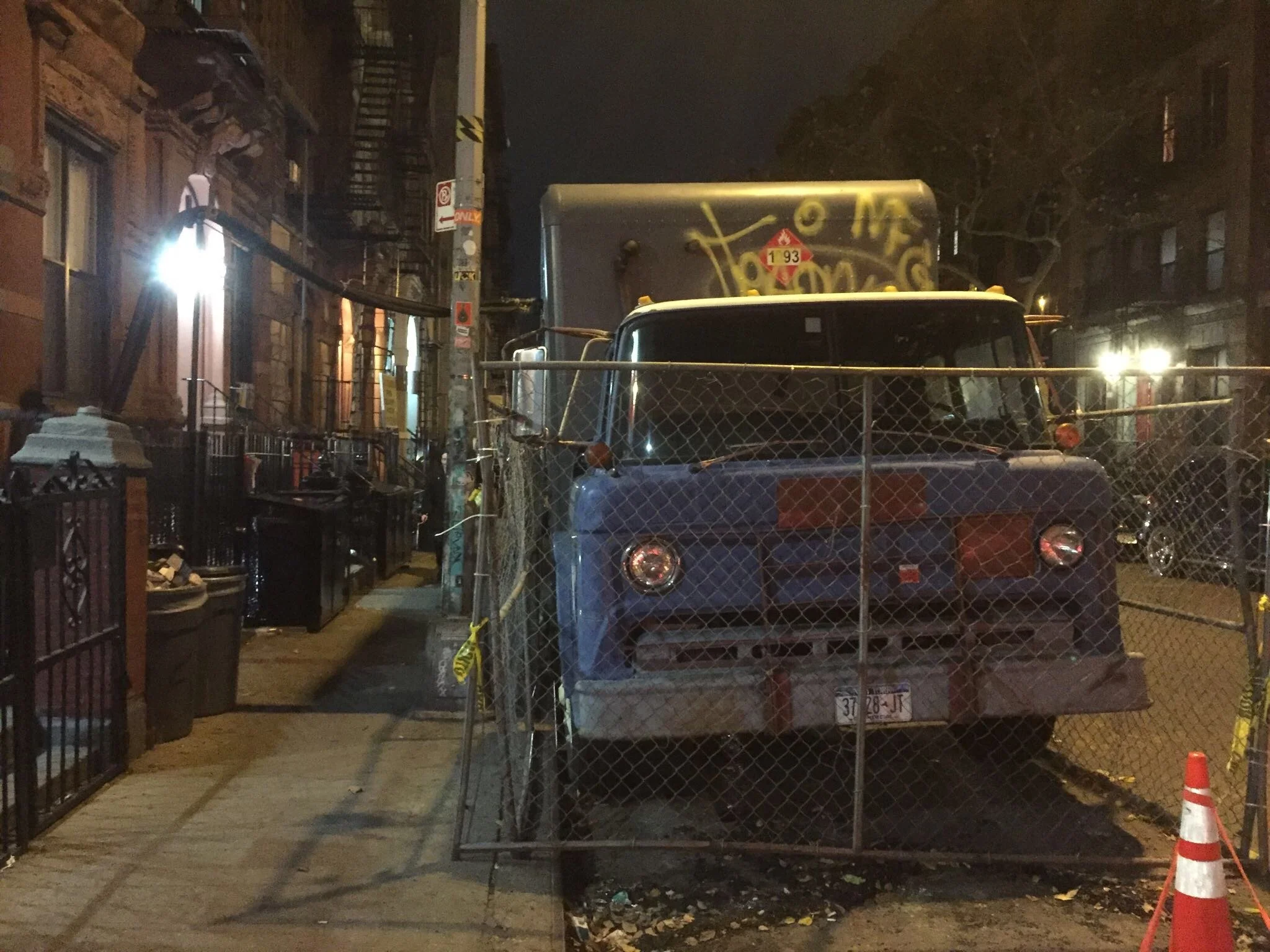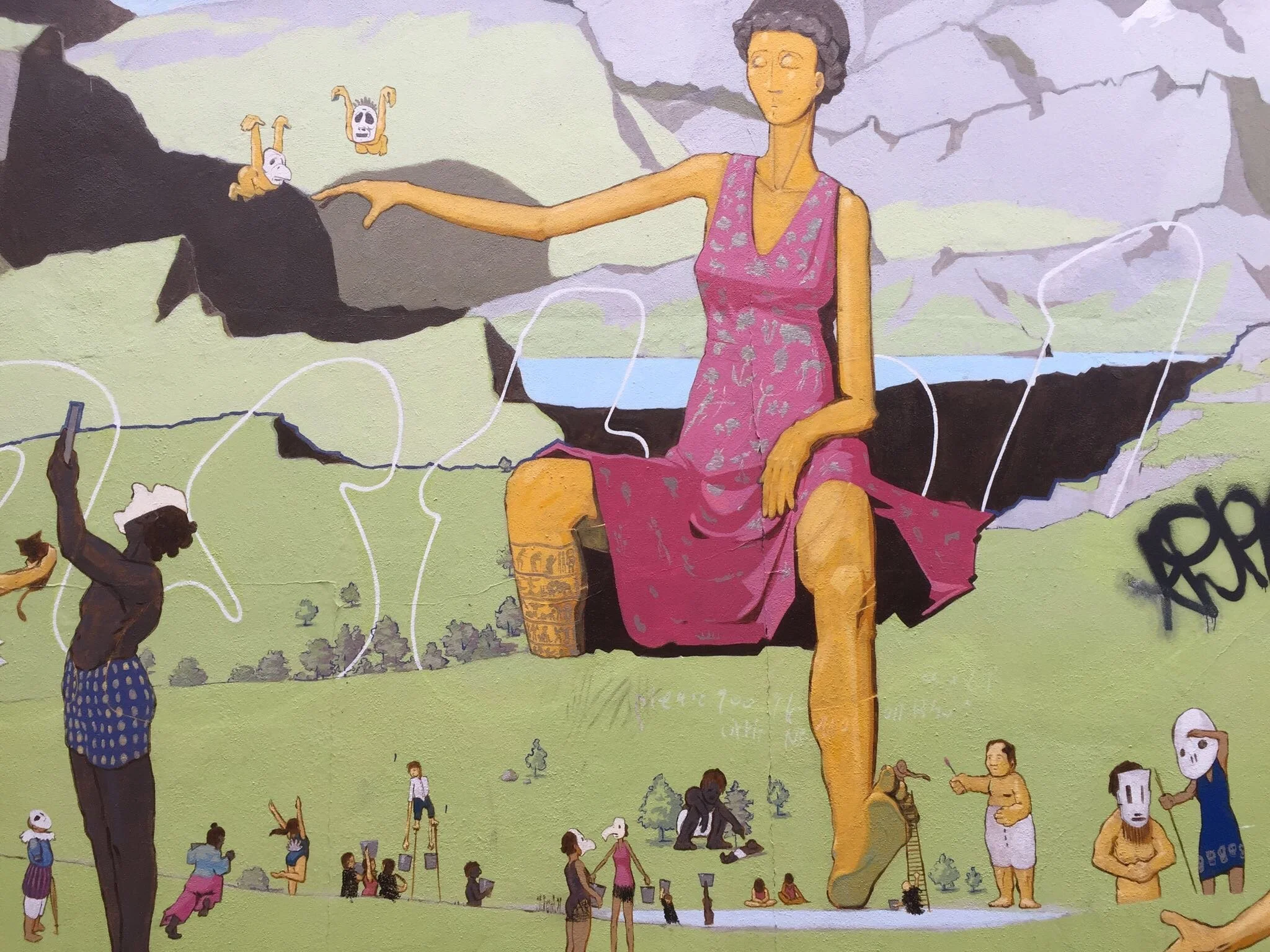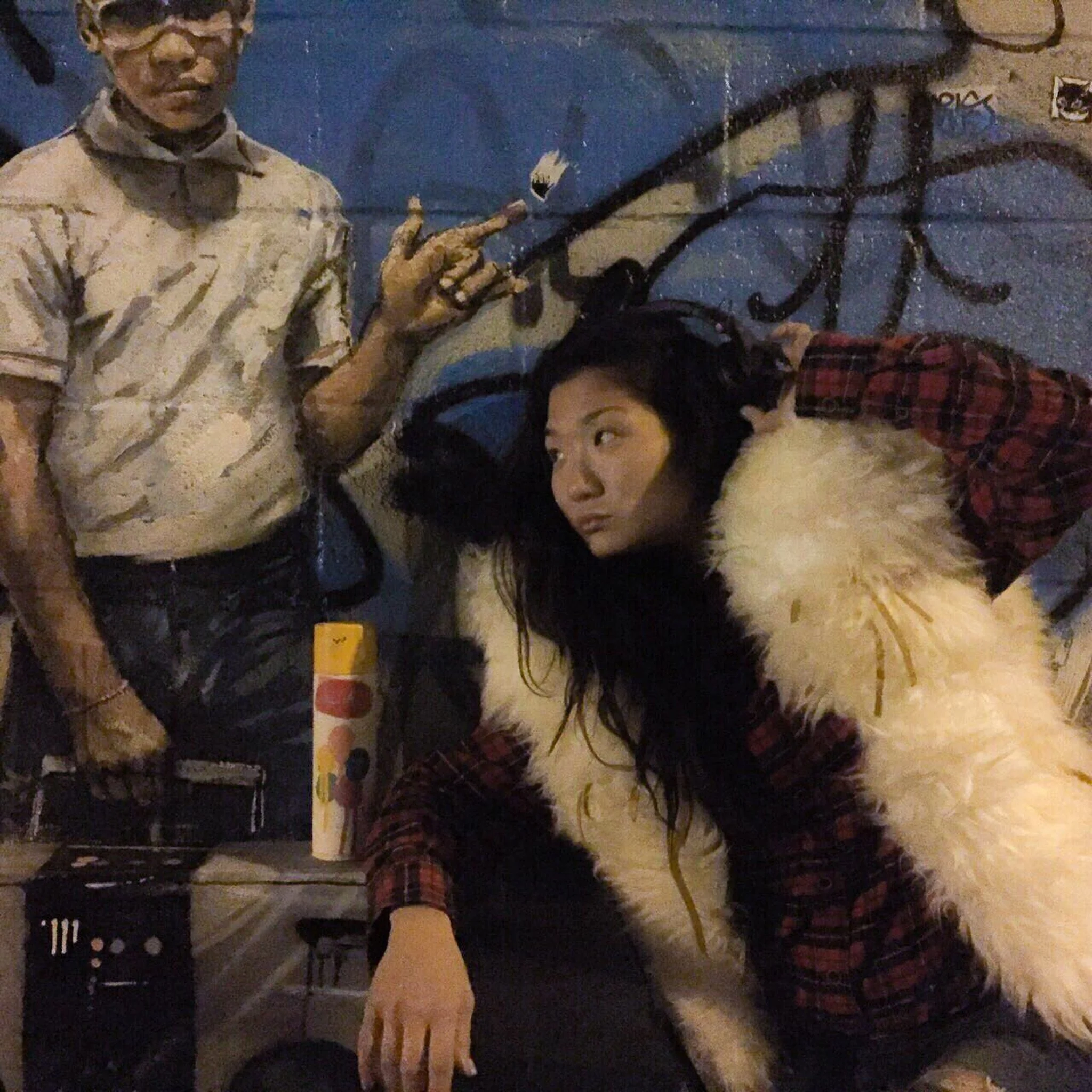 Outside the apartment we stop and talk about the new graffiti. I realise that the group of kids outside the doorway the night before were blocking the sidewalk so the graffiti could be painted without being seen. It had all been happening as I walked past.