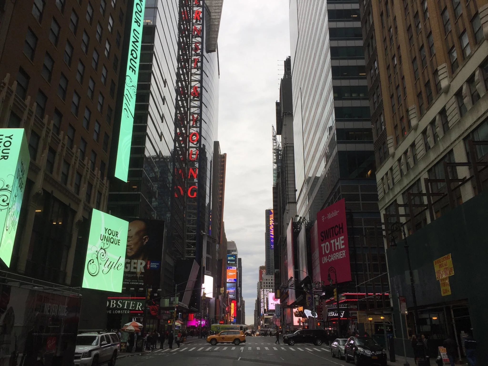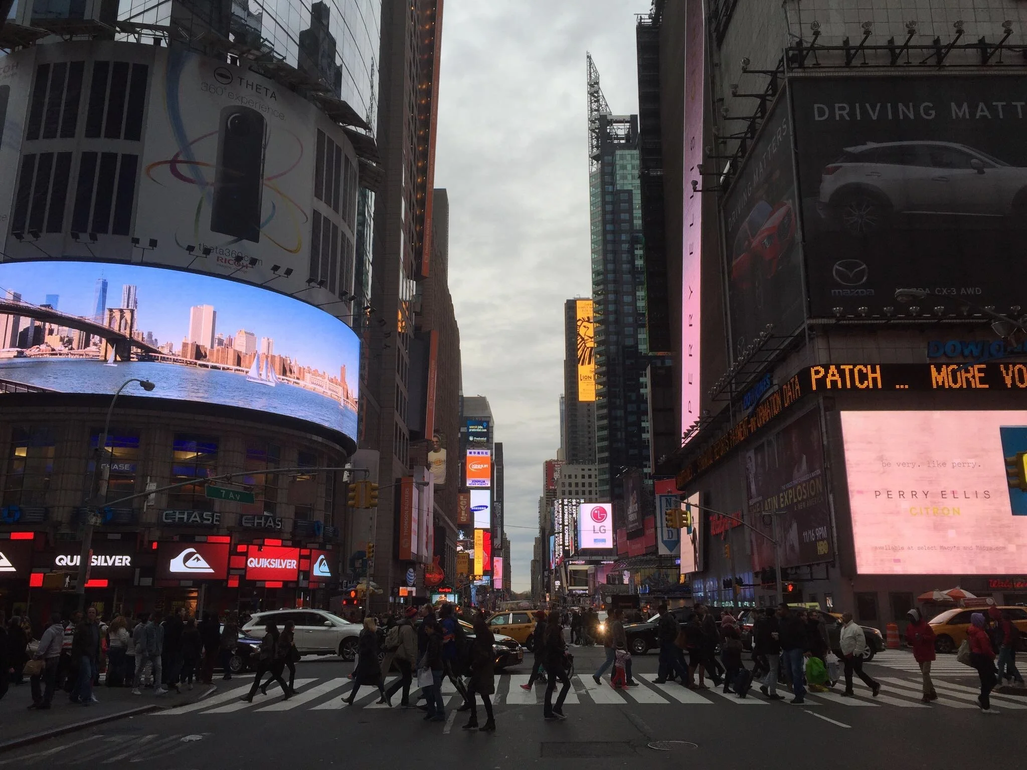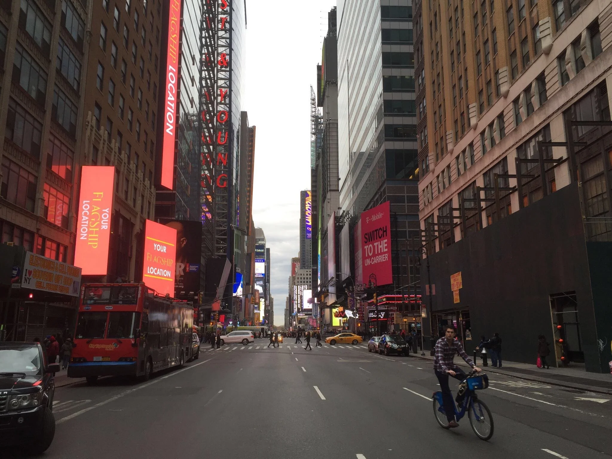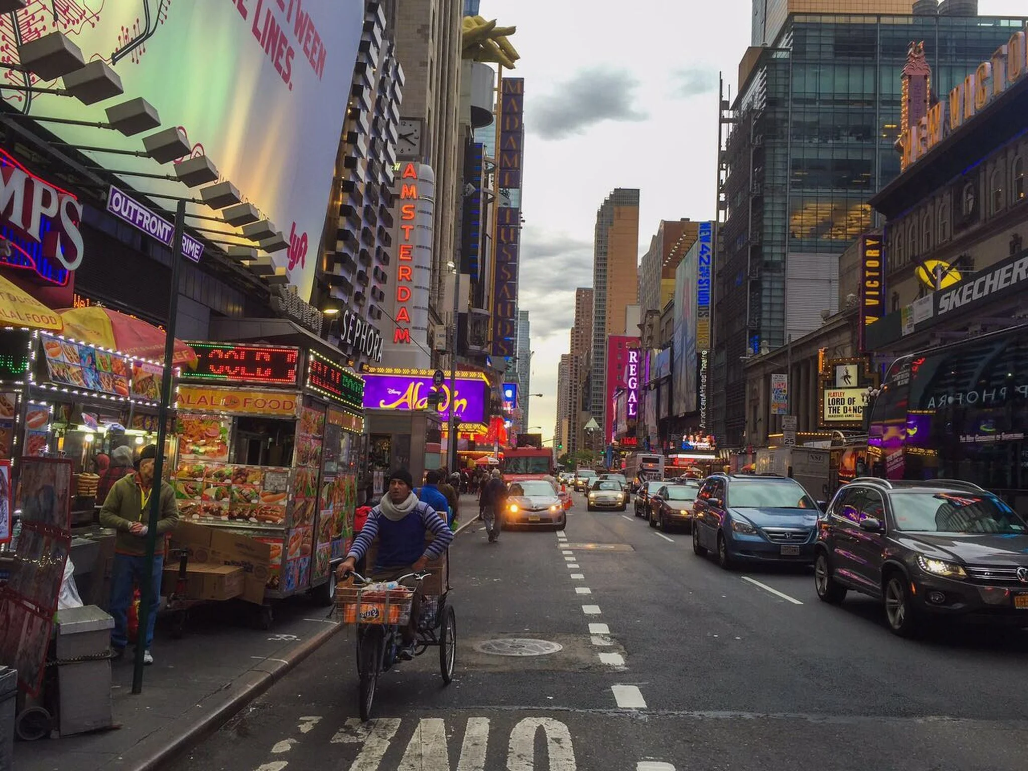 Like much of Manhattan, I've seen Times Square in the movies but the imagery is overpowering. There are screens the size of buildings. I've stepped right into Blade Runner. The horizon never seems to get closer. Each block is like another layer in a computer game.