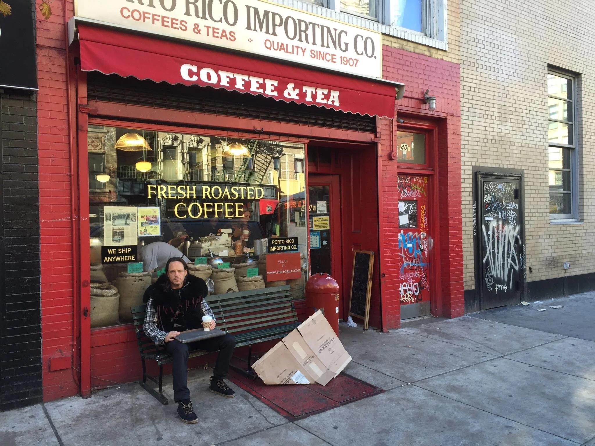 There's a shop that imports coffee at the end of the block. We squeeze through the sacks full of coffee beans that line the shop, grab a take out and head across the street for one last Cafe Orlin breakfast special.